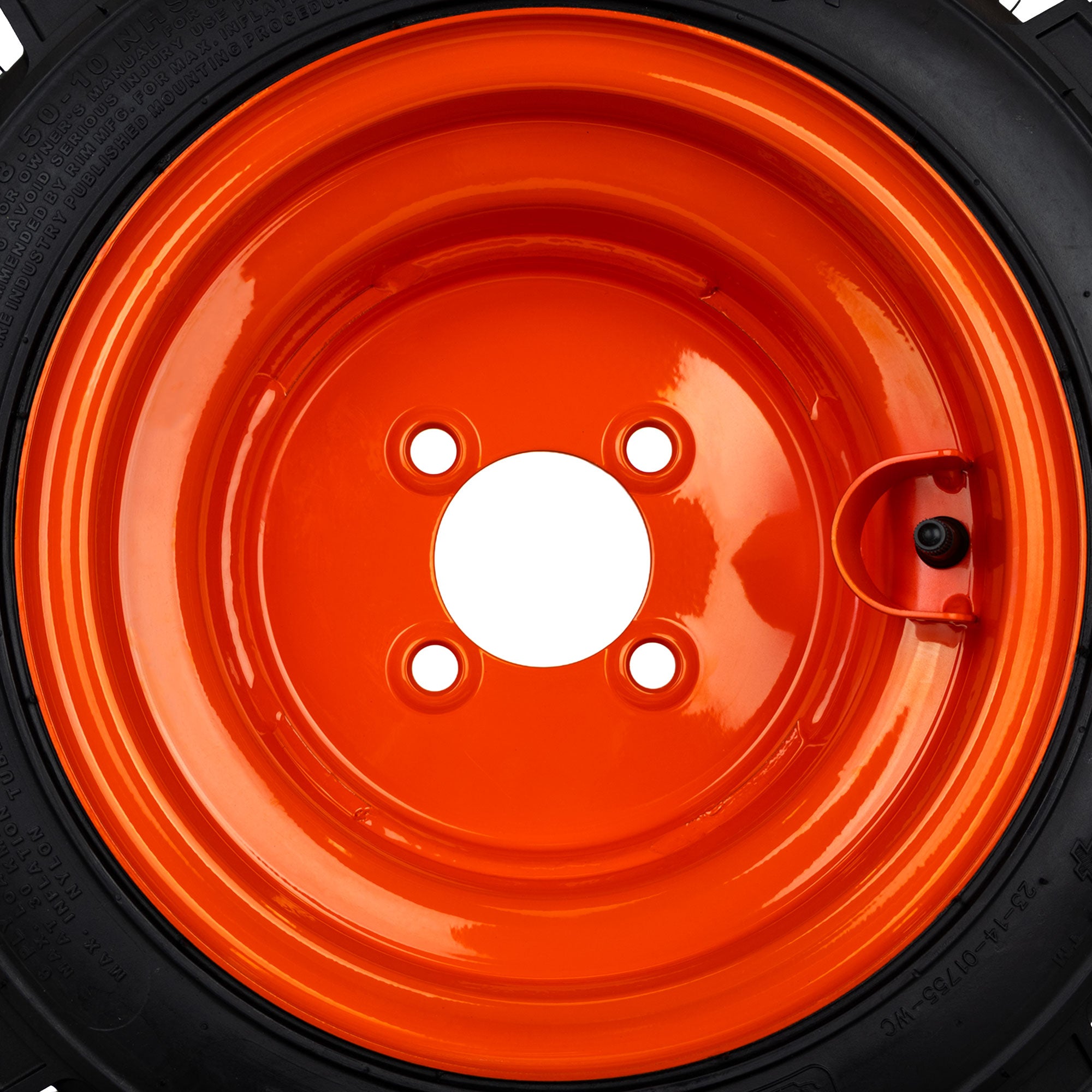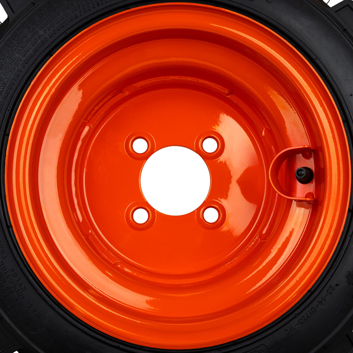 - Heavy Duty 4 Lug Wheels - Powder Coated Orange - Valve Stem Guard - Aggressive Tread
