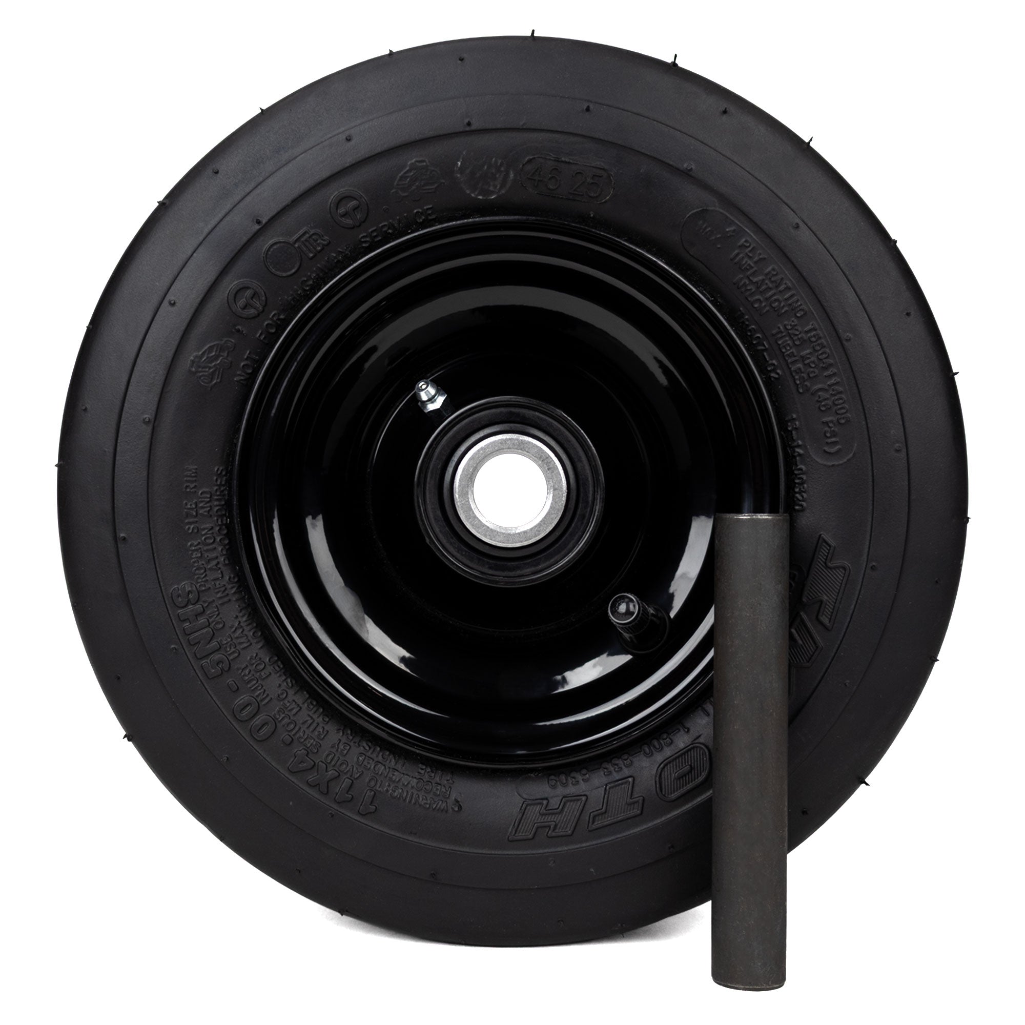 You are purchasing a single pneumatic wheel and tire assembly compatible with Hustler Super 104 Left/Right Side Deck
