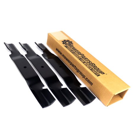 You are purchasing three heavy duty replacement mower blades compatible with Grasshopper 52"