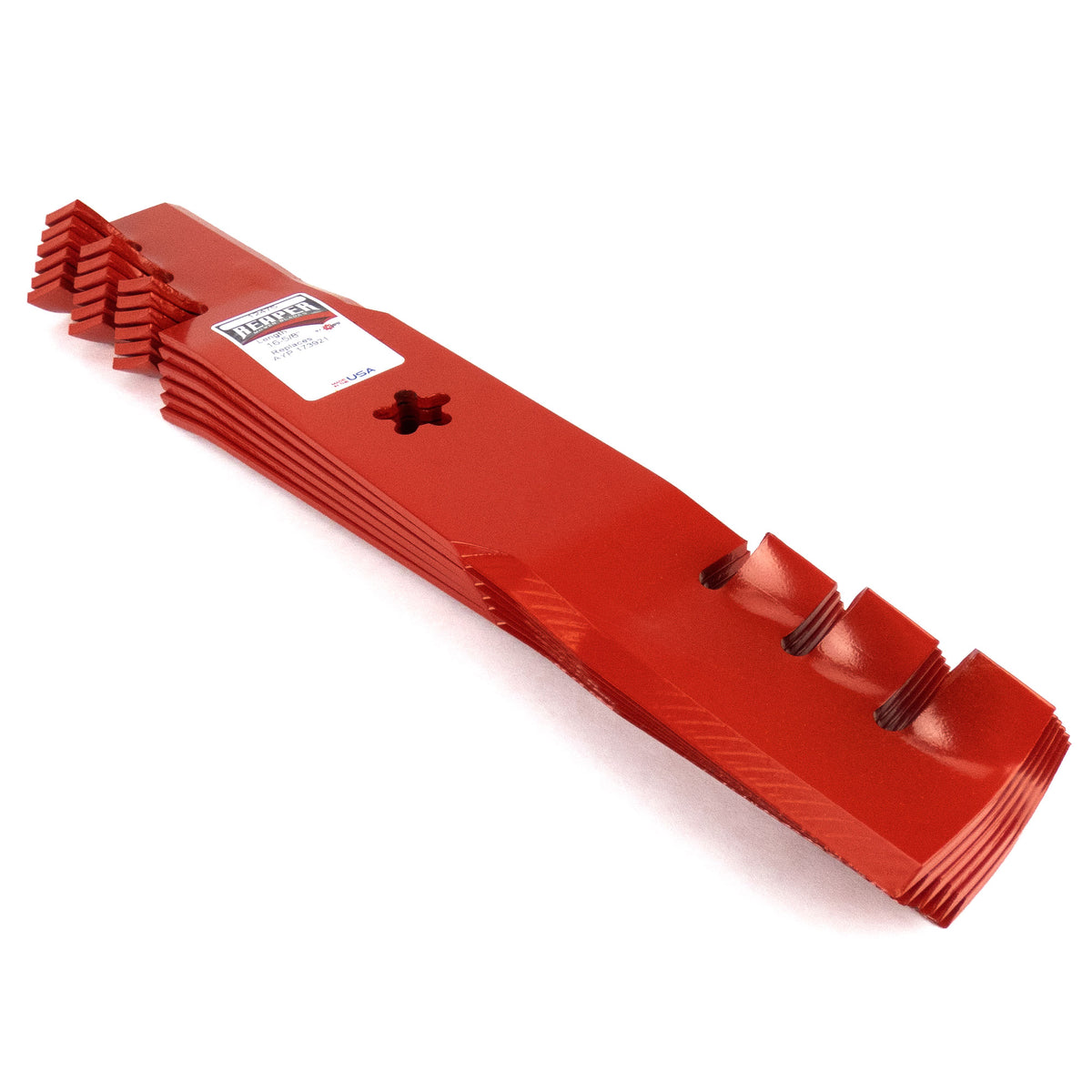 You are purchasing six USA Made Reaper 16-5/8" Toothed Mulching Blades
